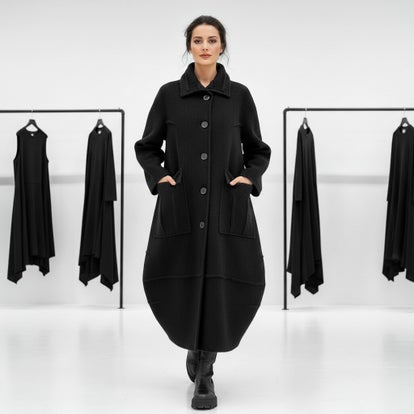 Winter Mantel in modischer Tulpenform mit leichtem Innenfutter in schwarz