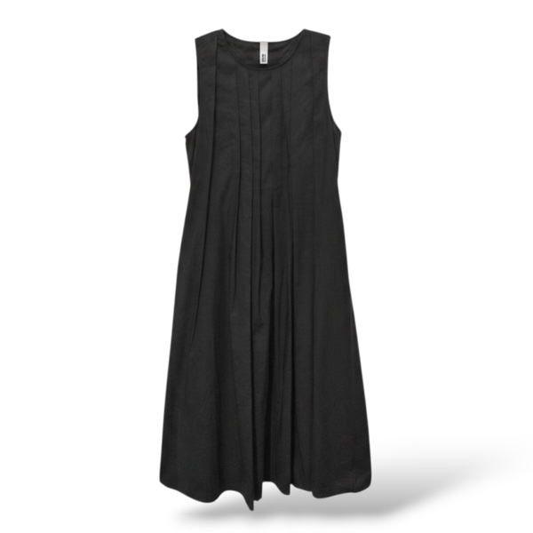 Dieses arpate, schwarze Kleid ist in zeitloser A-Linie geschnitten und punktet mit vielseitiger Verwendbarkeit