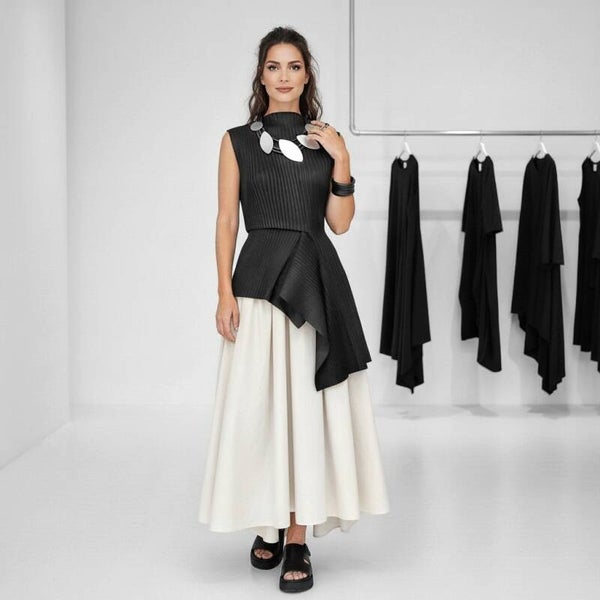 Plissee Top "Edo" mit asymmetrischem Verlauf in schwarz