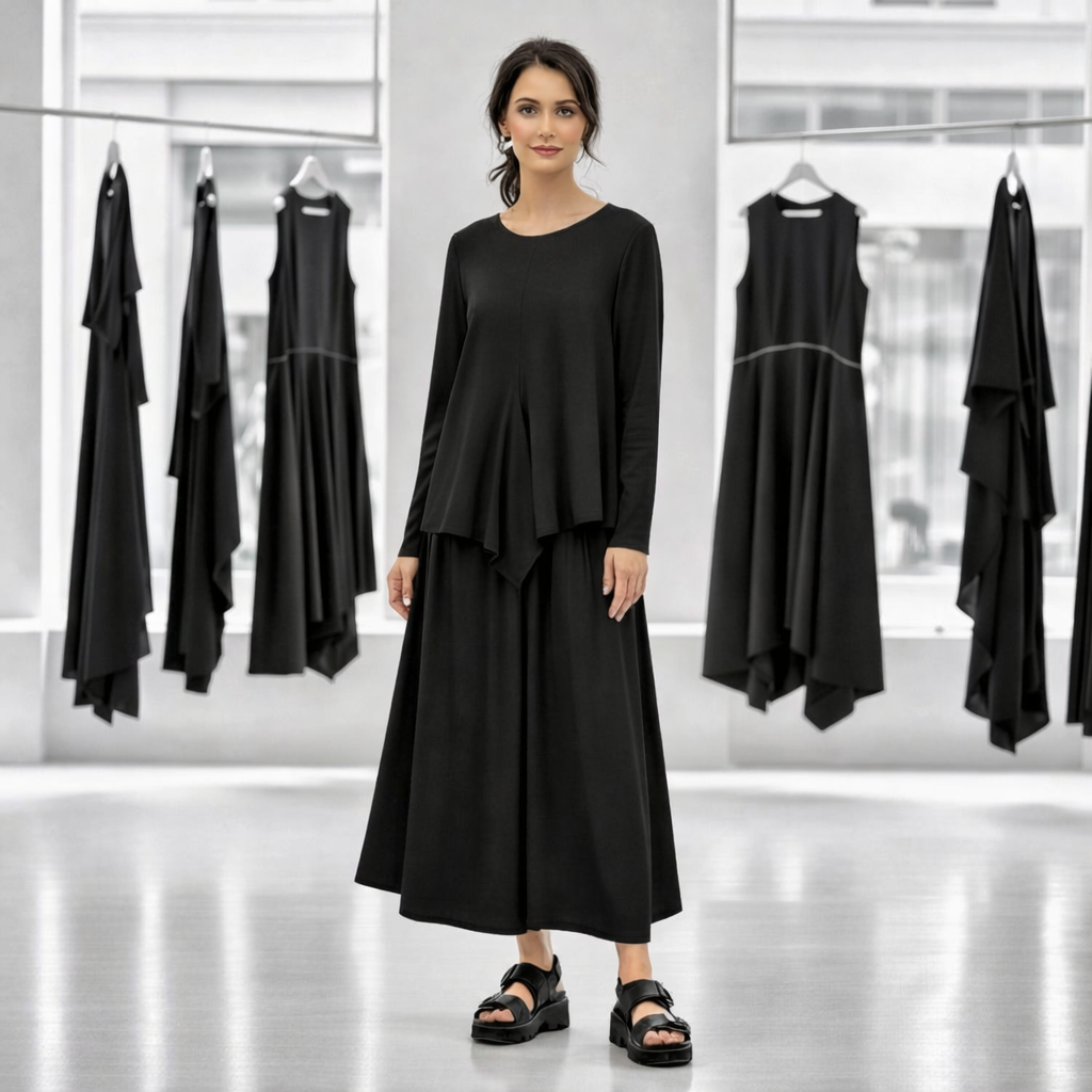 Oberteil in A-Linie mit zipfeligem Verlauf in schwarz