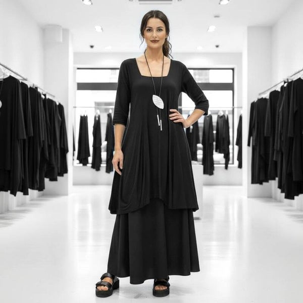 Tunika-Kleid von "Magna" mit viereckigem Ausschitt in schwarz
