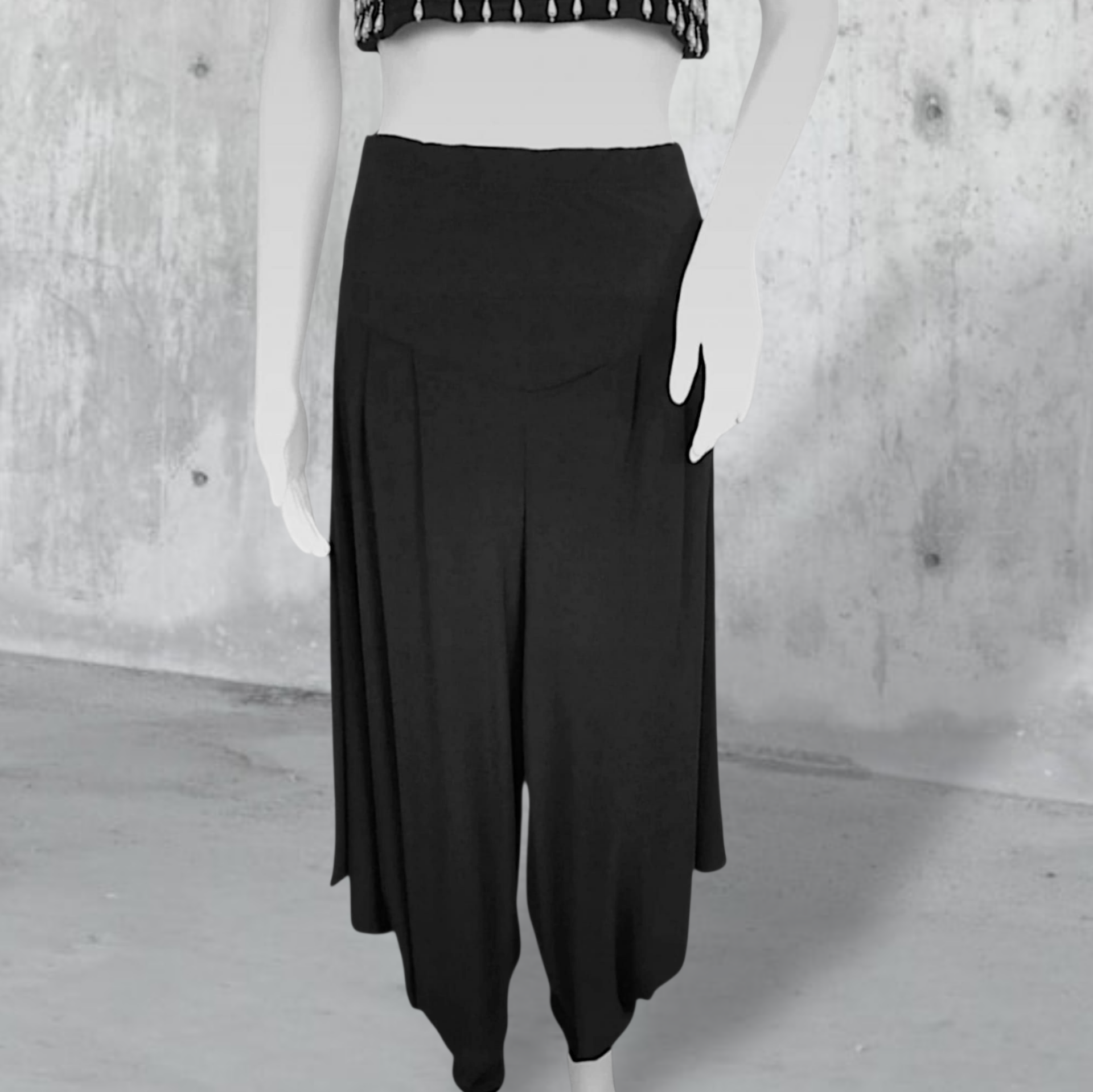 Diese megatolle, schwarze Hose mit tiefem Schritt und seitlichen Zipfeln ist ein absoluter Hingucker und dazu noch äussert bequem