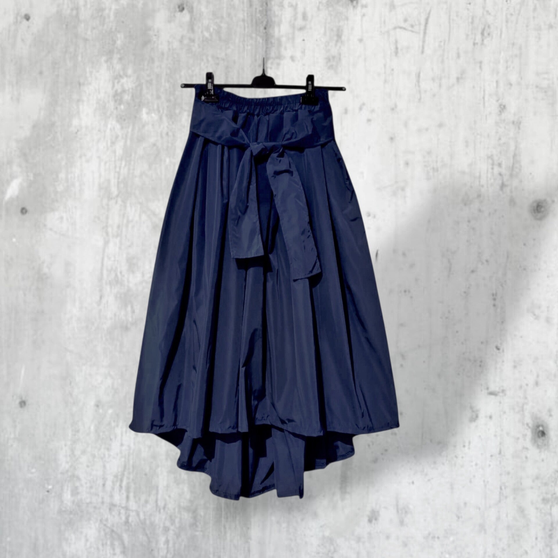 eleganter Taft Rock "Aoki" mit Gummibund und Bindegürtel in mitternachtsblau