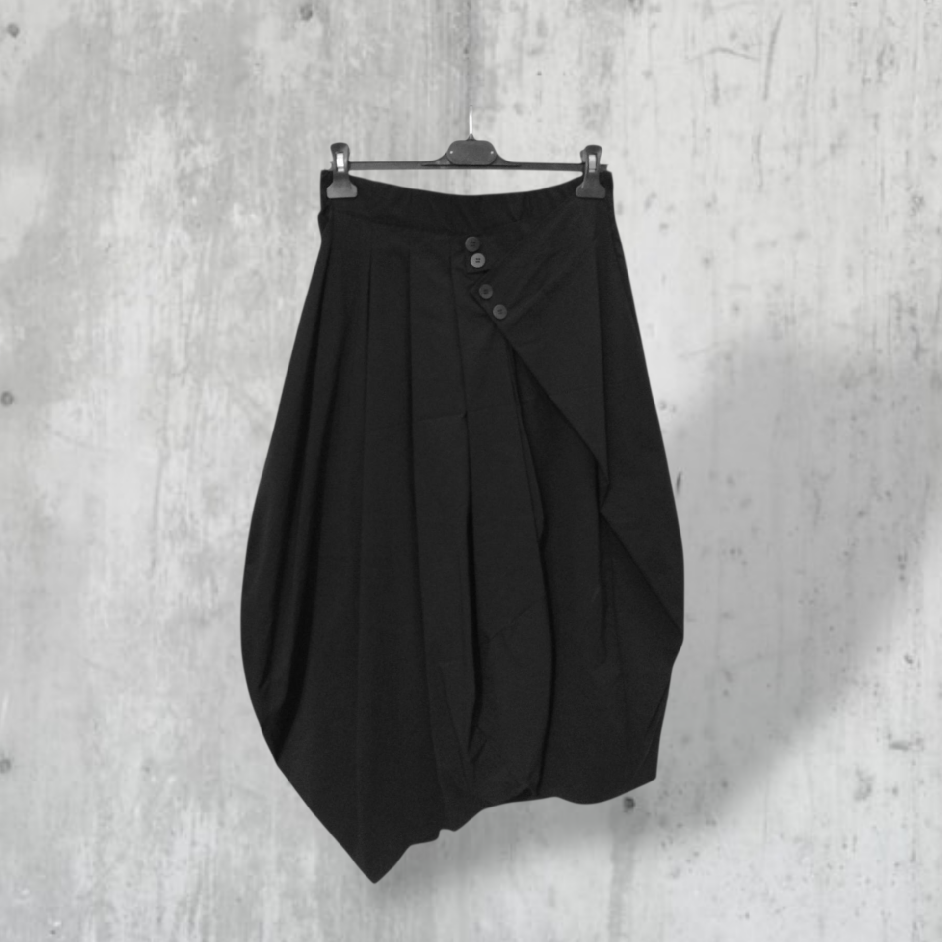 stylisher Rock in modischer Tulpenform mit schräg verlaufender Knopfleiste in schwarz