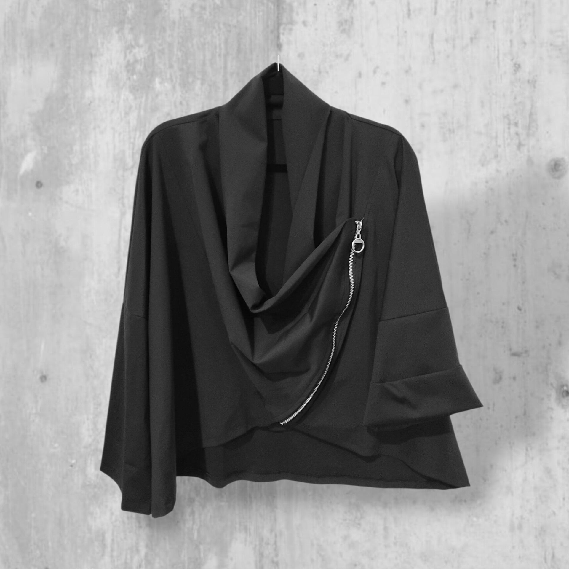 kurze Jacke mit schrägem Reissverschluss in schwarz