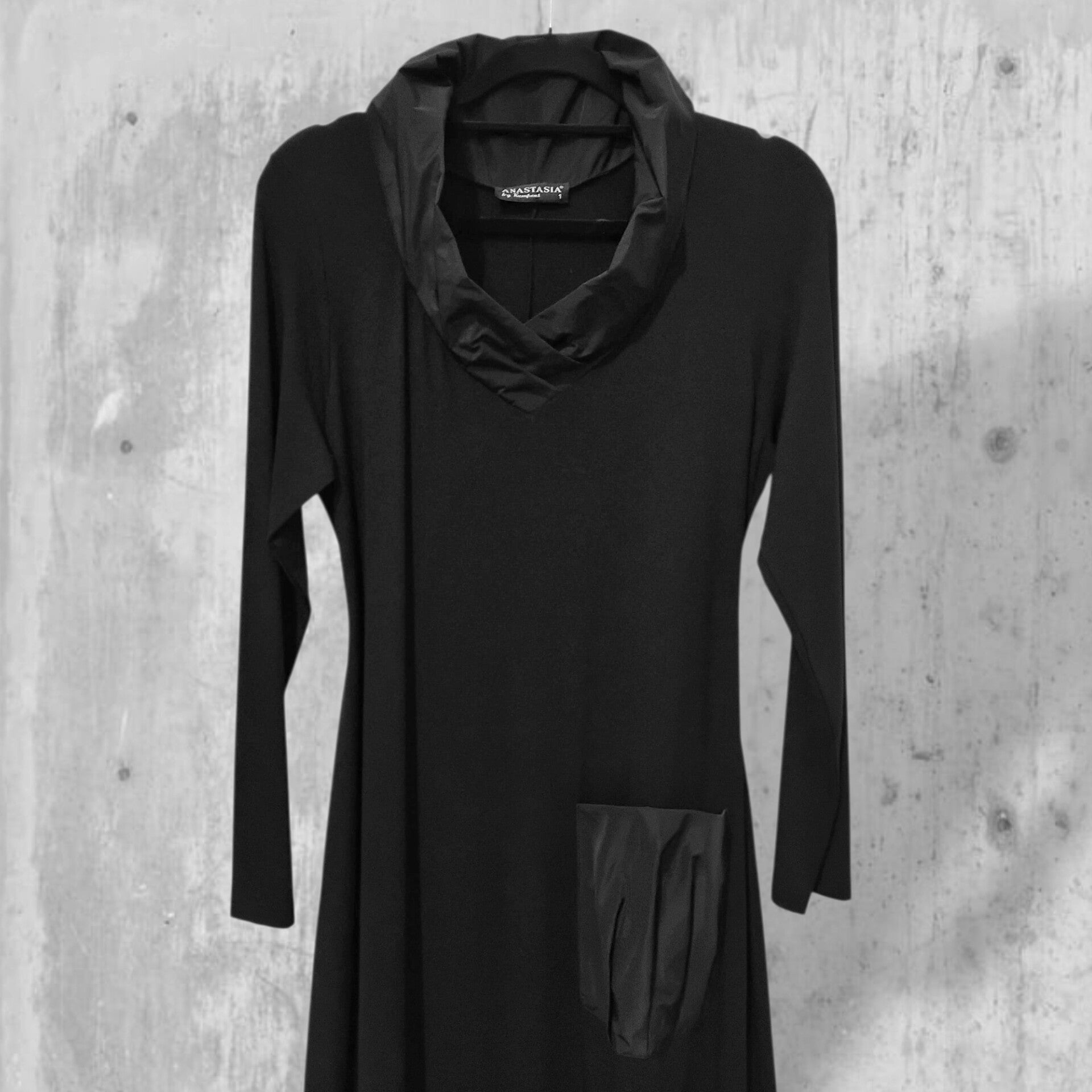 Dieses schicke, schwarze Kleid ist in figurbetonter, leicht angedeuteter Tulpenform geschnitten. Das Kleid ist qualitativ sehr hochwertig ist hervorragend für besondere Anlässe oder als Teil der Abendgarderobe geeignet.