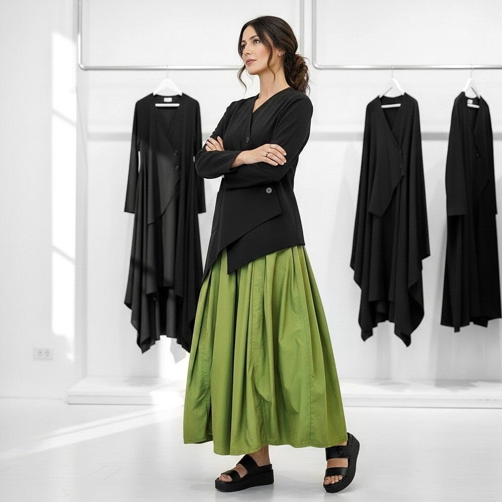 Baumwoll Rock "Haruki" in Tulpenform mit Gummibund in apfelgrün