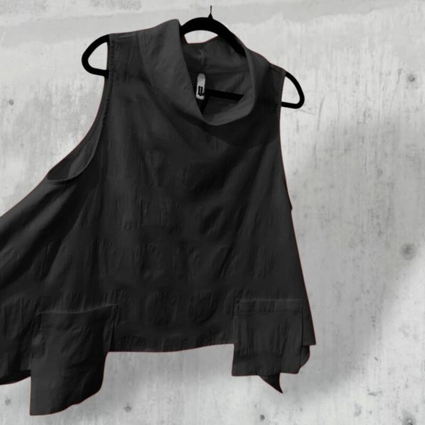 Top mit Ziertäschchen und Kragen in schwarz