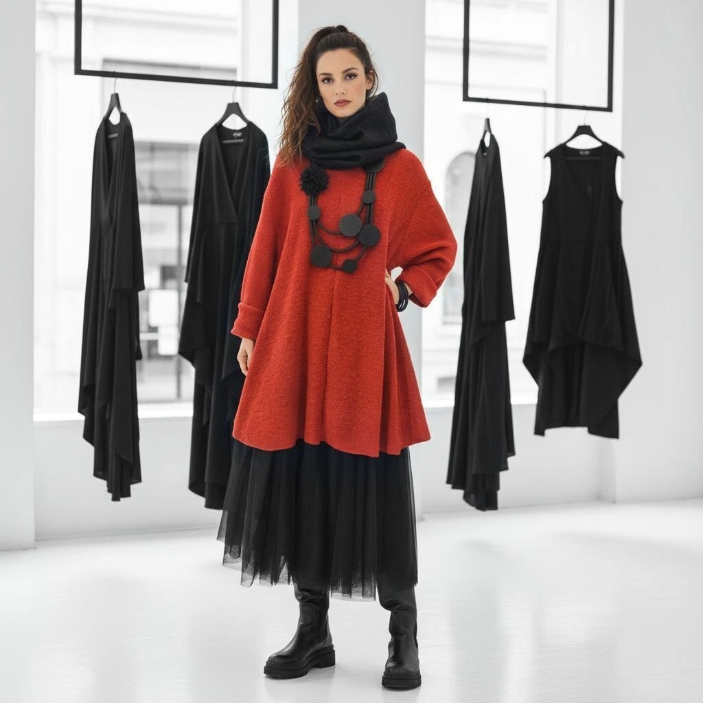 Bouclé-Strick Pulli in gemütlicher A-Linie in rostorange