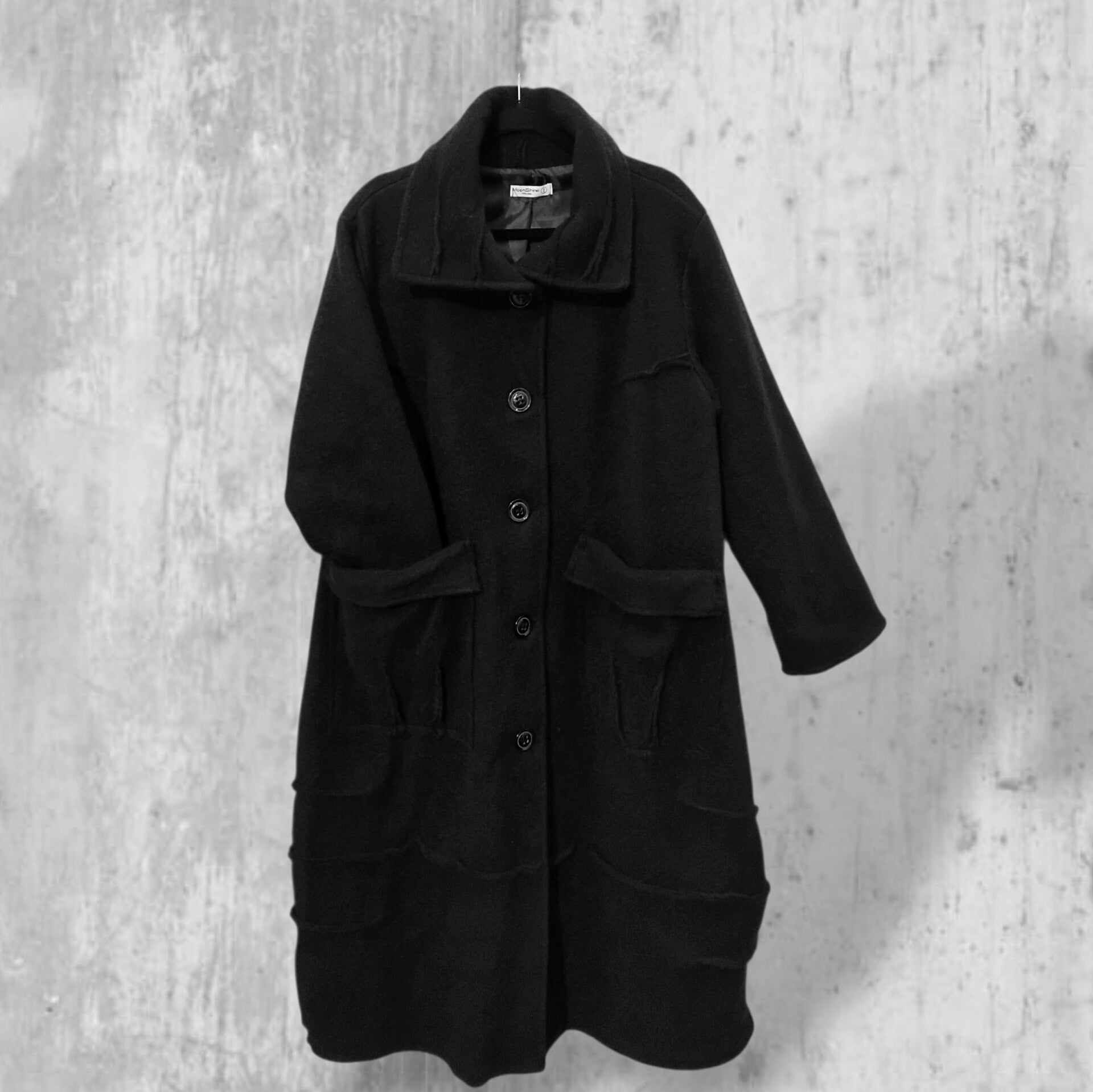 Dieser schicke, schwarze Wintermantel ist in modischer Tulpenform geschnitten, er hat zwei aufgesetzte Taschen, einen aparten Kragen und er verfügt über kontrastreiche Ziernähte, die nach aussen gearbeitet sind, welche dem Mantel eine sehr stylishe Note verleihen.
