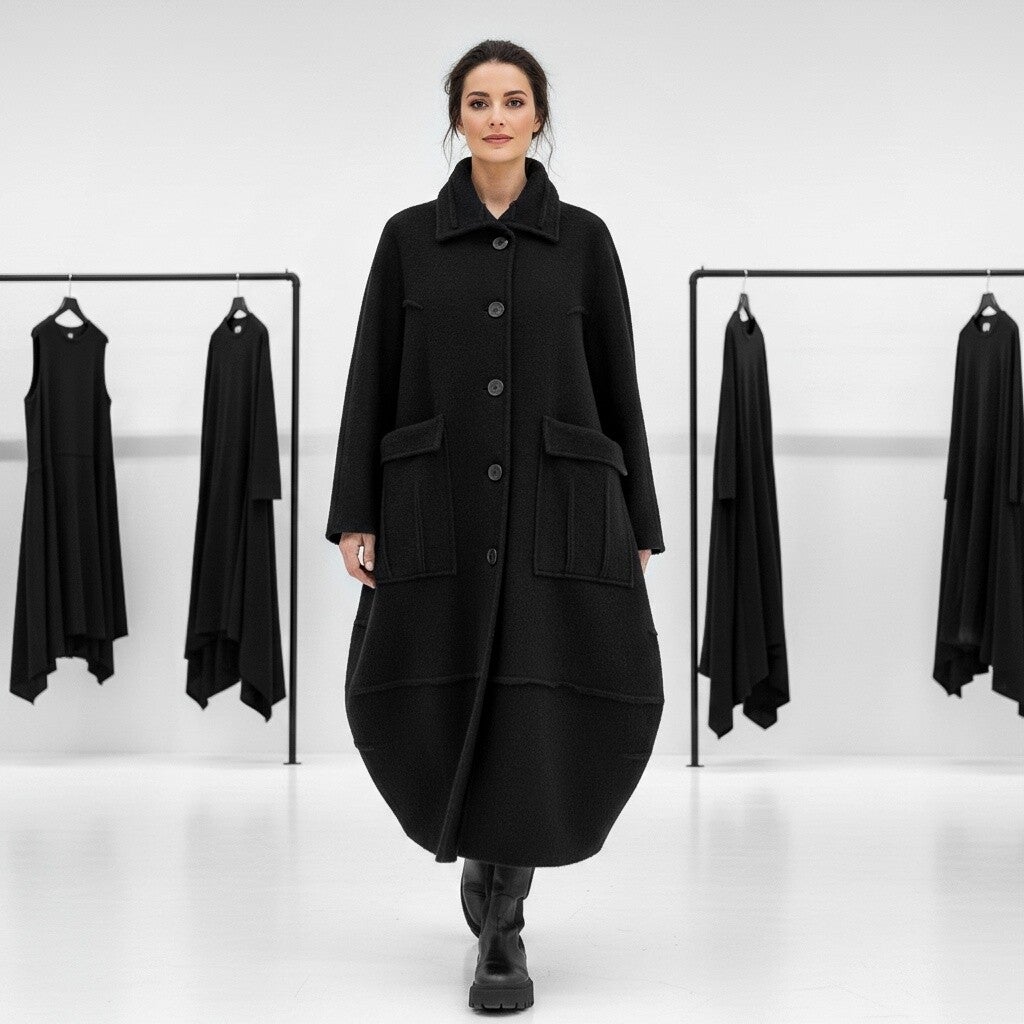 Winter Mantel in modischer Tulpenform mit leichtem Innenfutter in schwarz