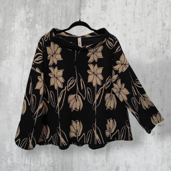 strukturiertes Oberteil mit halsfernem Kragen & floralem Muster