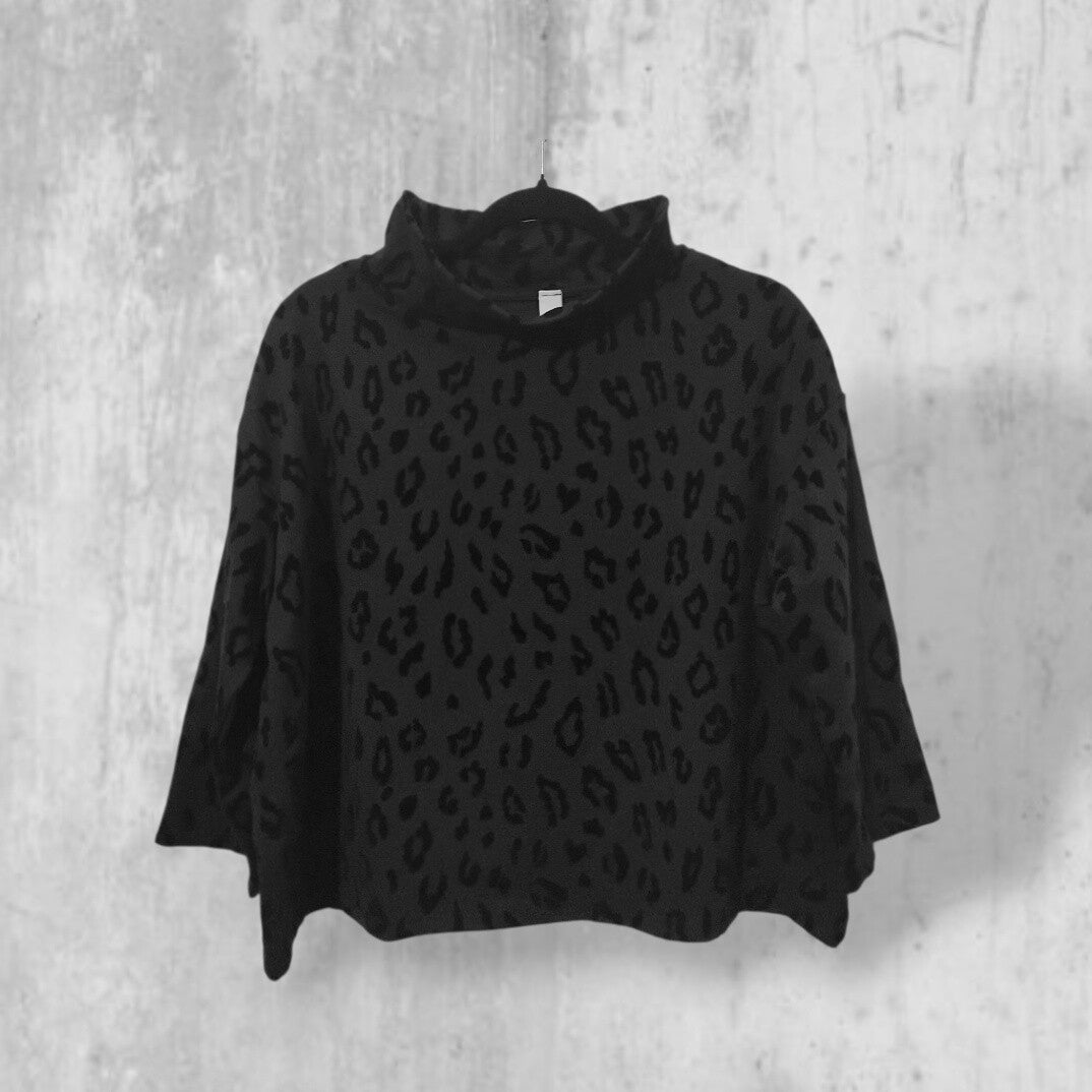 Oberteil in Kastenform mit kleinem Stehkragen in schwarz gemustert