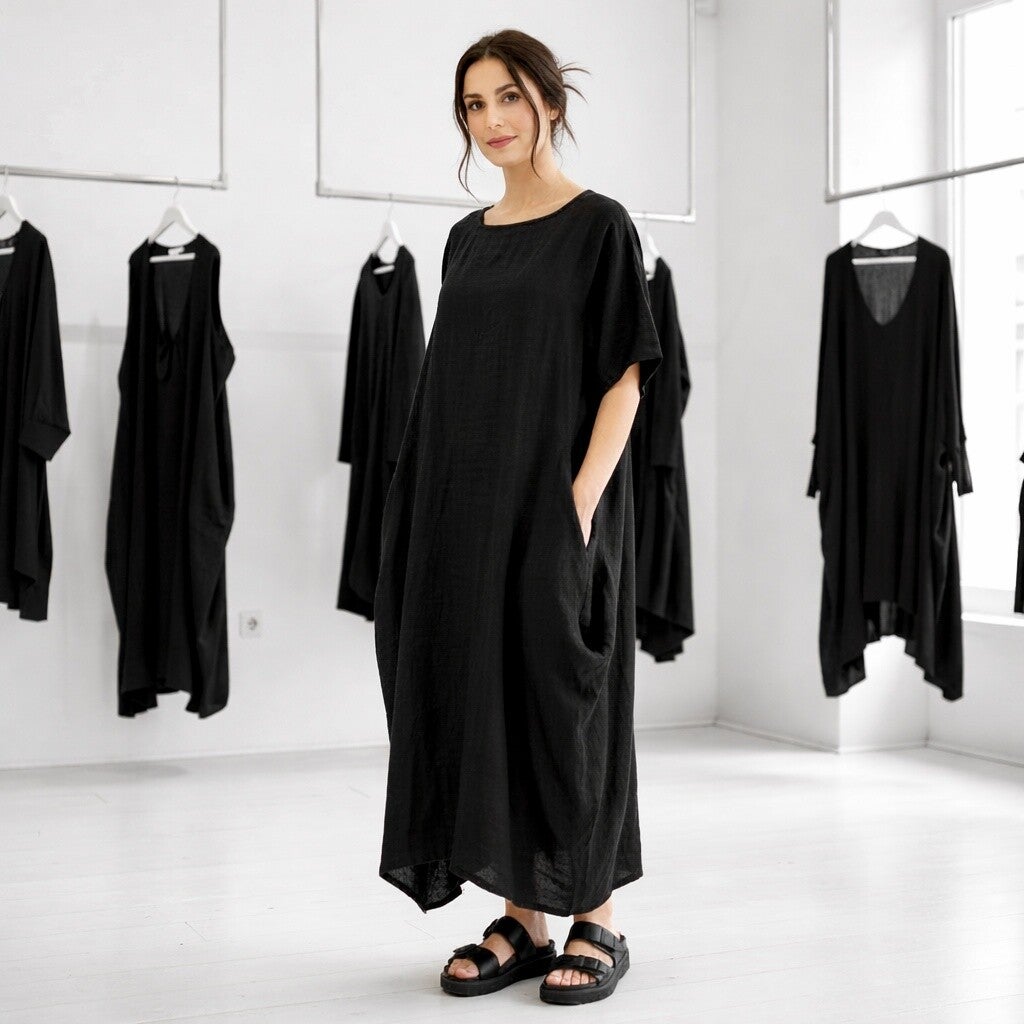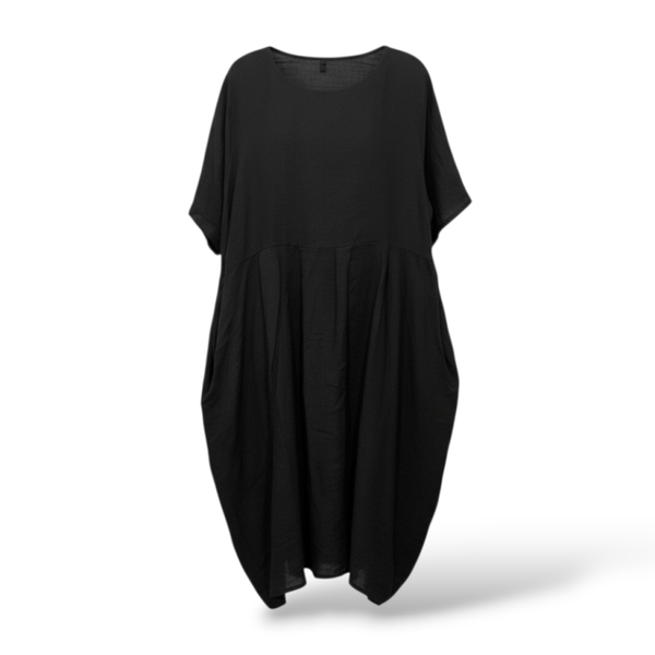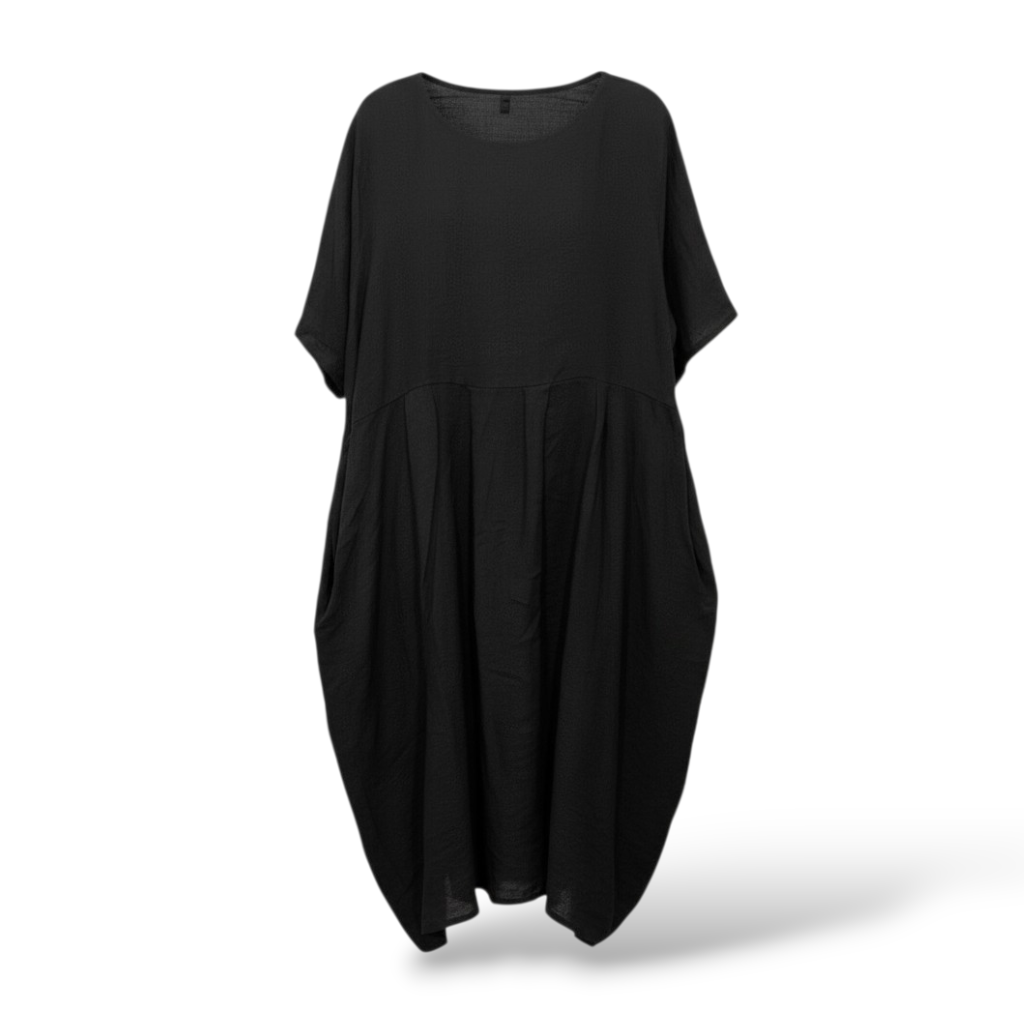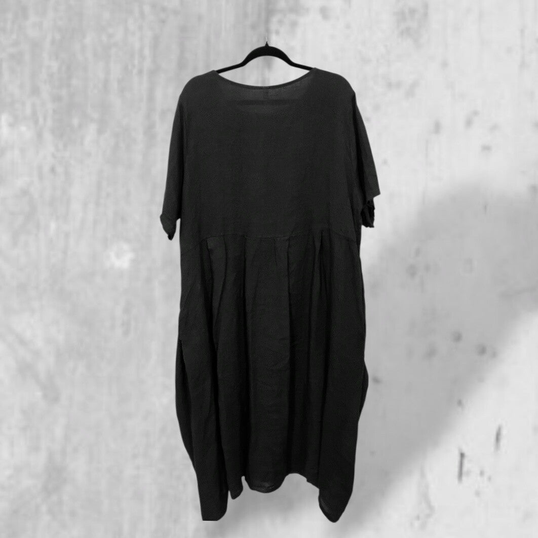 Leinen Kleid in gemütlicher Tulpenform in schwarz