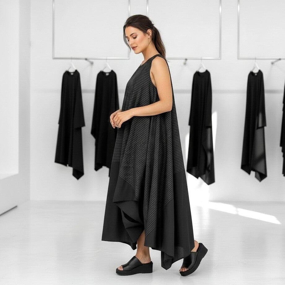 extravagantes Kleid im Avantgarde Style in topaktuellen Streifen-Look