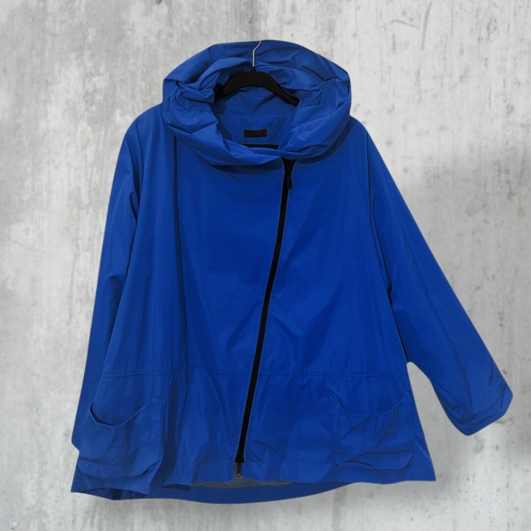 Diese exklusive, zeitlose Jacke hat ein leichtes Innenfutter, zwei aufgesetzte Taschen, einen stylishen, schräg verlaufenden, schwarzen zwei-Wege-Reißverschluss, eine dekorative aufgesetzte Tasche im unteren Rückenteil und eine coole Kapuze, die dich hervorragend gegen Wind und Regen schützt.