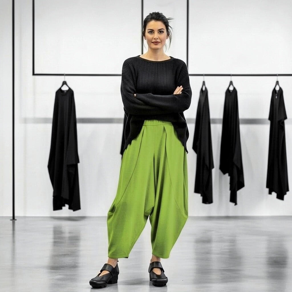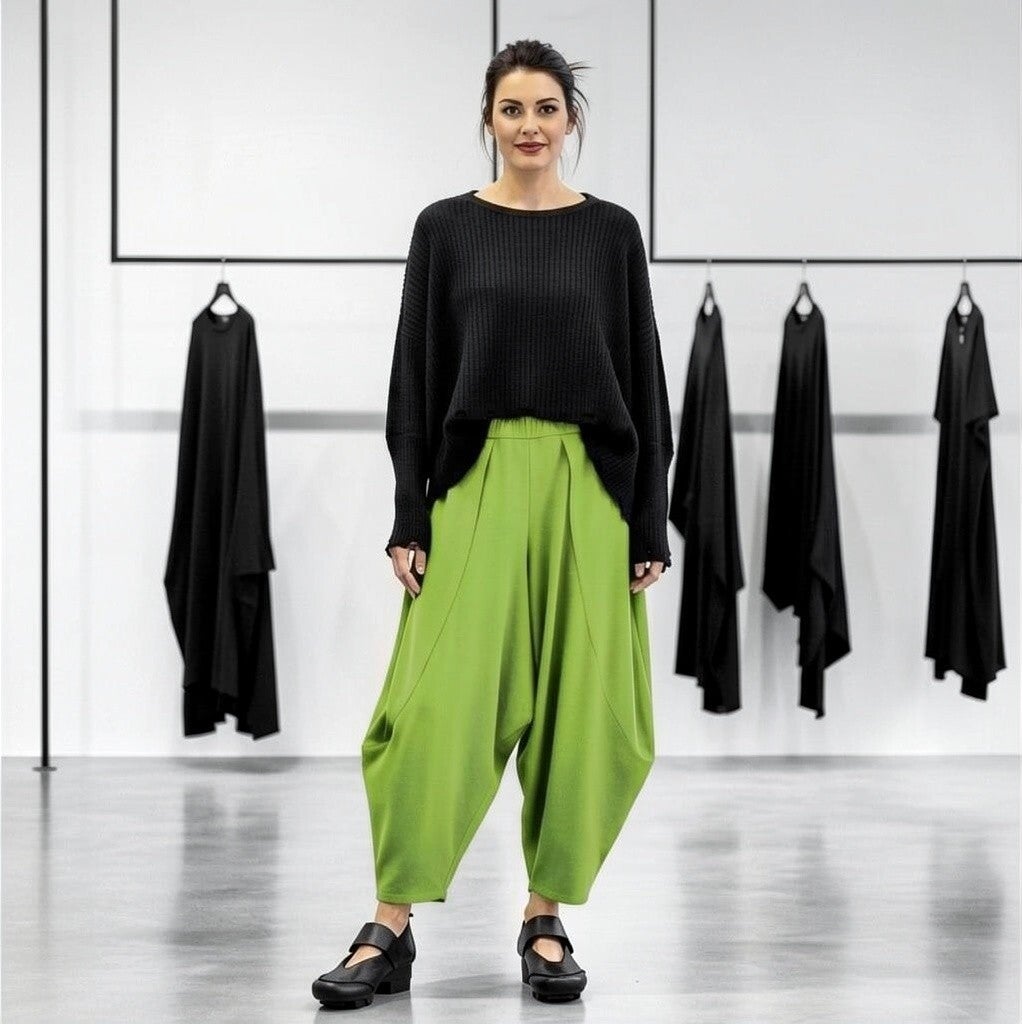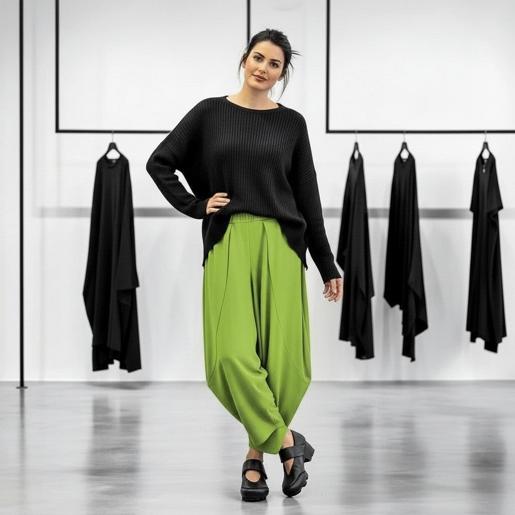 stylishe Hose in modischer Tulpenform mit Gummibund in apfelgrün