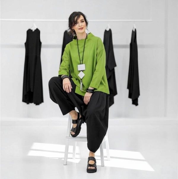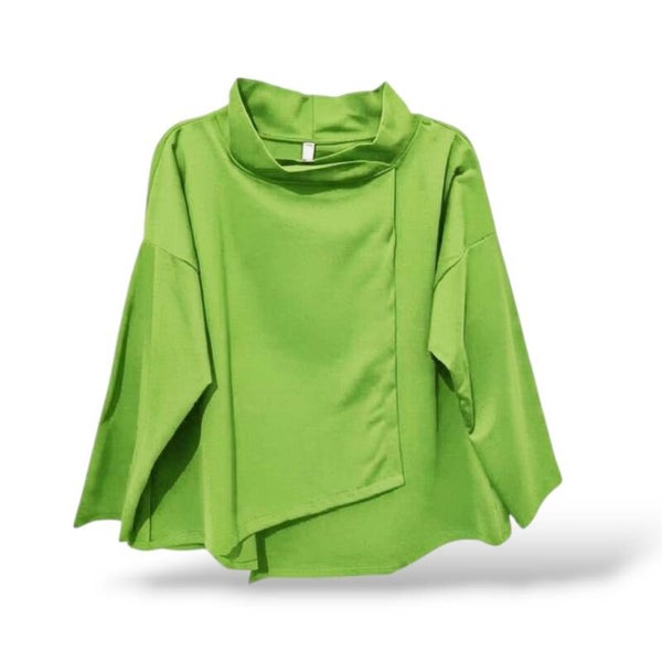 apartes Oberteil mit halsfernem Stehkragen in apfelgrün