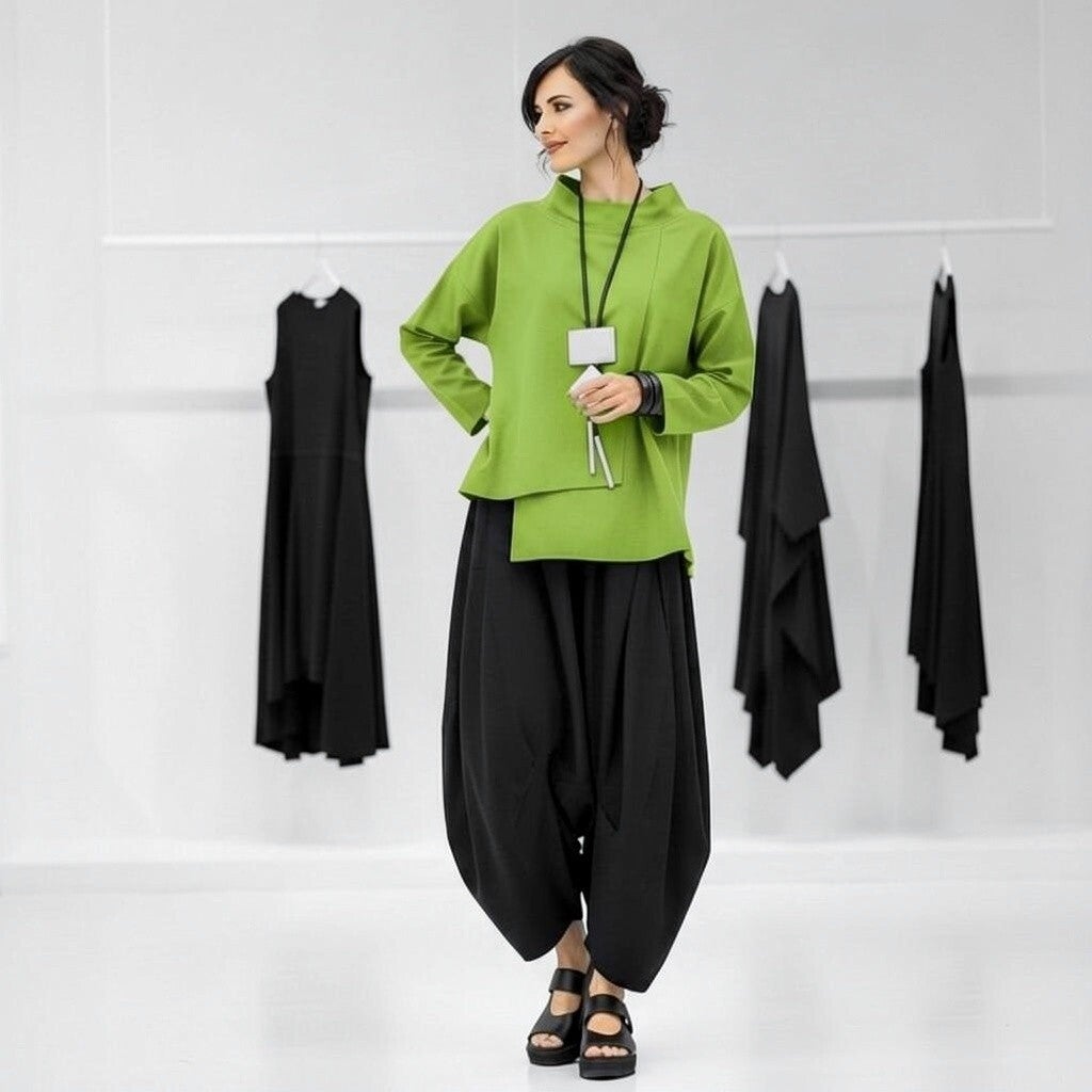 Dieses aparte Oberteil in grasgrün ist in modischer, leicht ausgestellter A-Linie geschnitten und mit einer effektvollen Schnittführung im Vorderbereich ausgestattet.