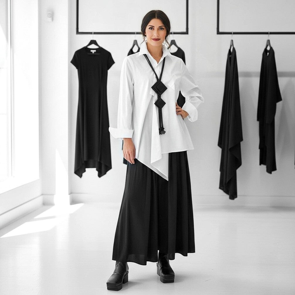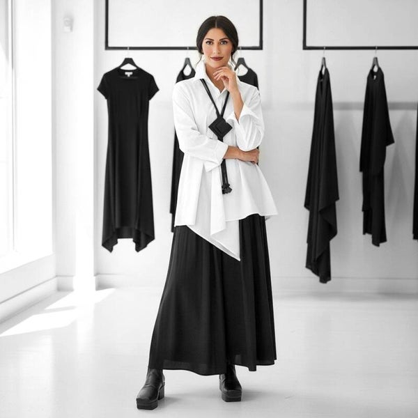 Diese extravagante, weiße Bluse überzeugt mit kreativer Schnittführung. Sie hat eine schräg verlaufende Knopfleiste, eine kleine Ziertasche über dem Brustbereich und ist im Vorderteil asymmetrisch geschnitten.