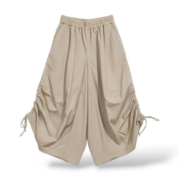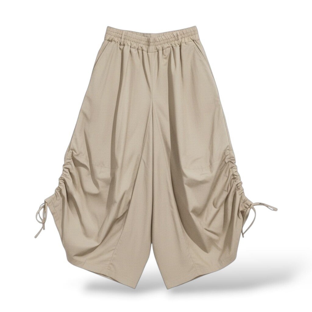 pfiffiger Hosenrock mit Gummibund und Raffbändchen in sandfarben