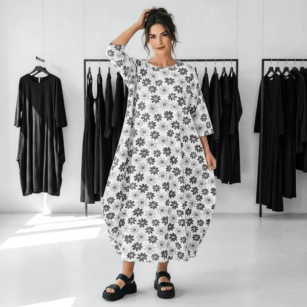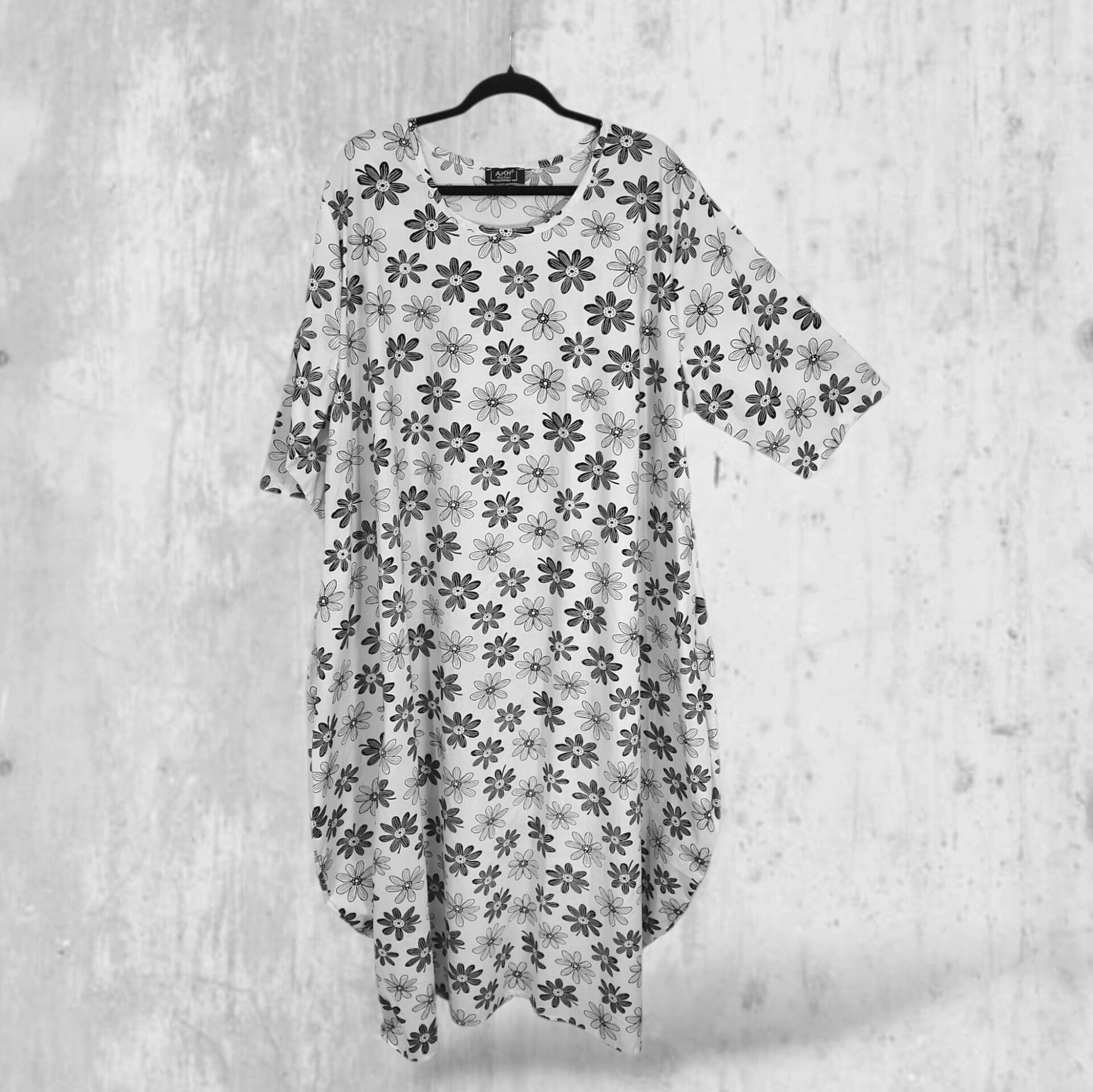 apartes Sommerkleid mit Blumendruck in weiß-schwarz