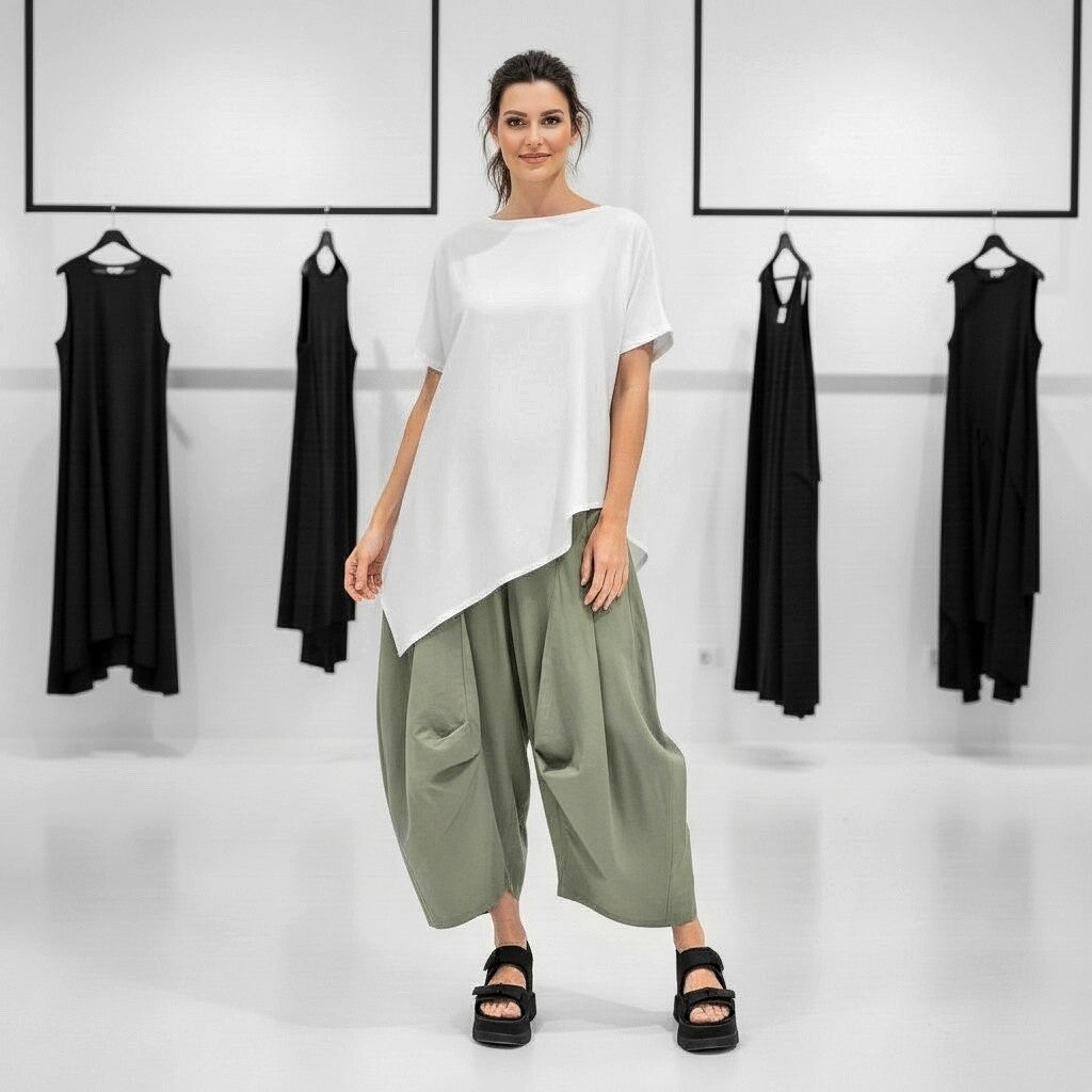 Die Hose ist, dank des komfortablen Gummibundes, super bequem und durch die einfallsreiche Schnittführung ein absoluter Eyecatcher.