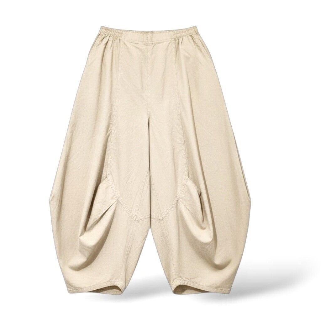 extravagante leichte Baumwoll-Hose "Yuki" mit Gummibund in sand