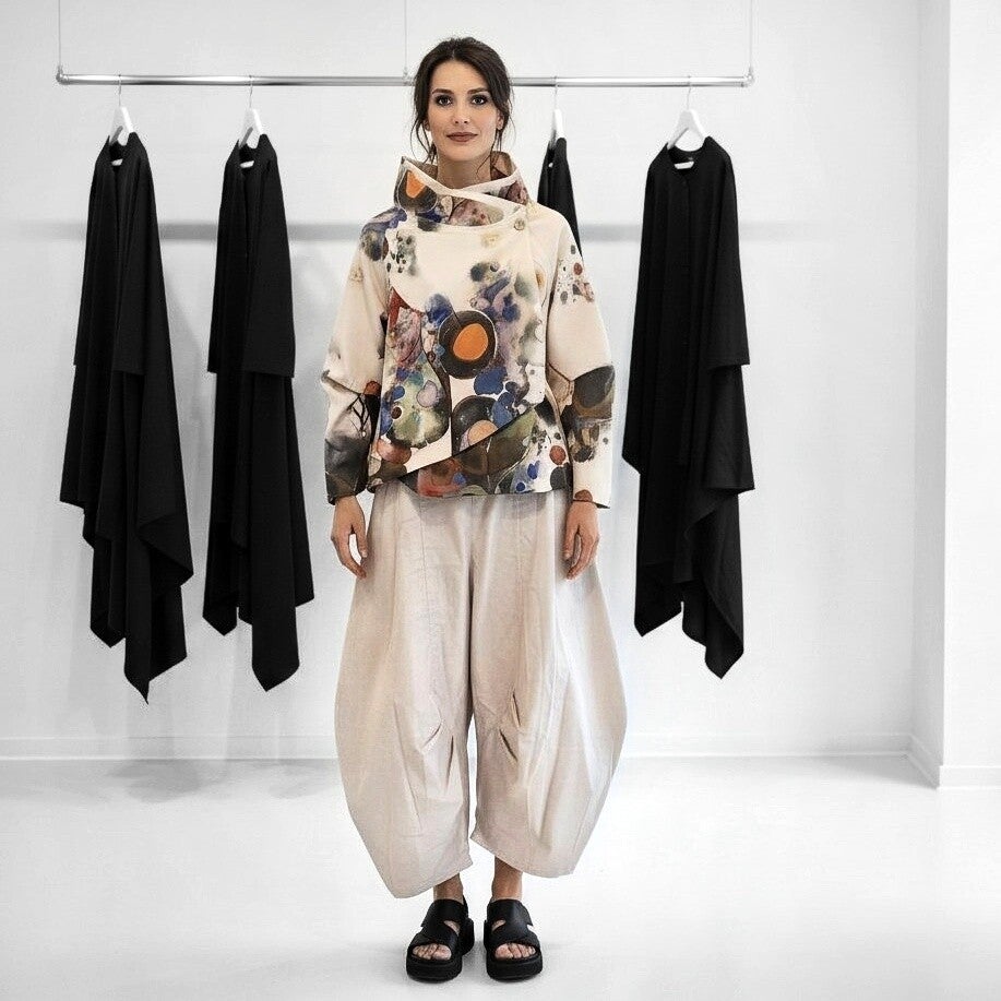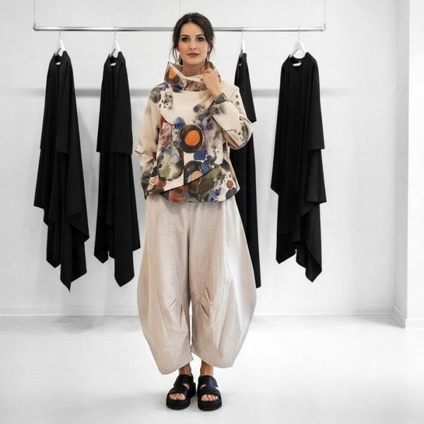 Die Hose ist, dank des komfortablen Gummibundes, super bequem und durch die einfallsreiche Schnittführung ein absoluter Eyecatcher.