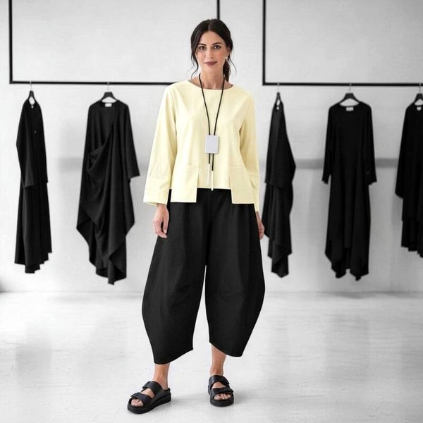 Dieses kurze, sehr gut kombinierbare Oberteil in hellem gelb ist in modischer Kastenform geschnitten und wirkt durch die zwei aufgesetztenTaschen im Vorderbereich super pfiffig.