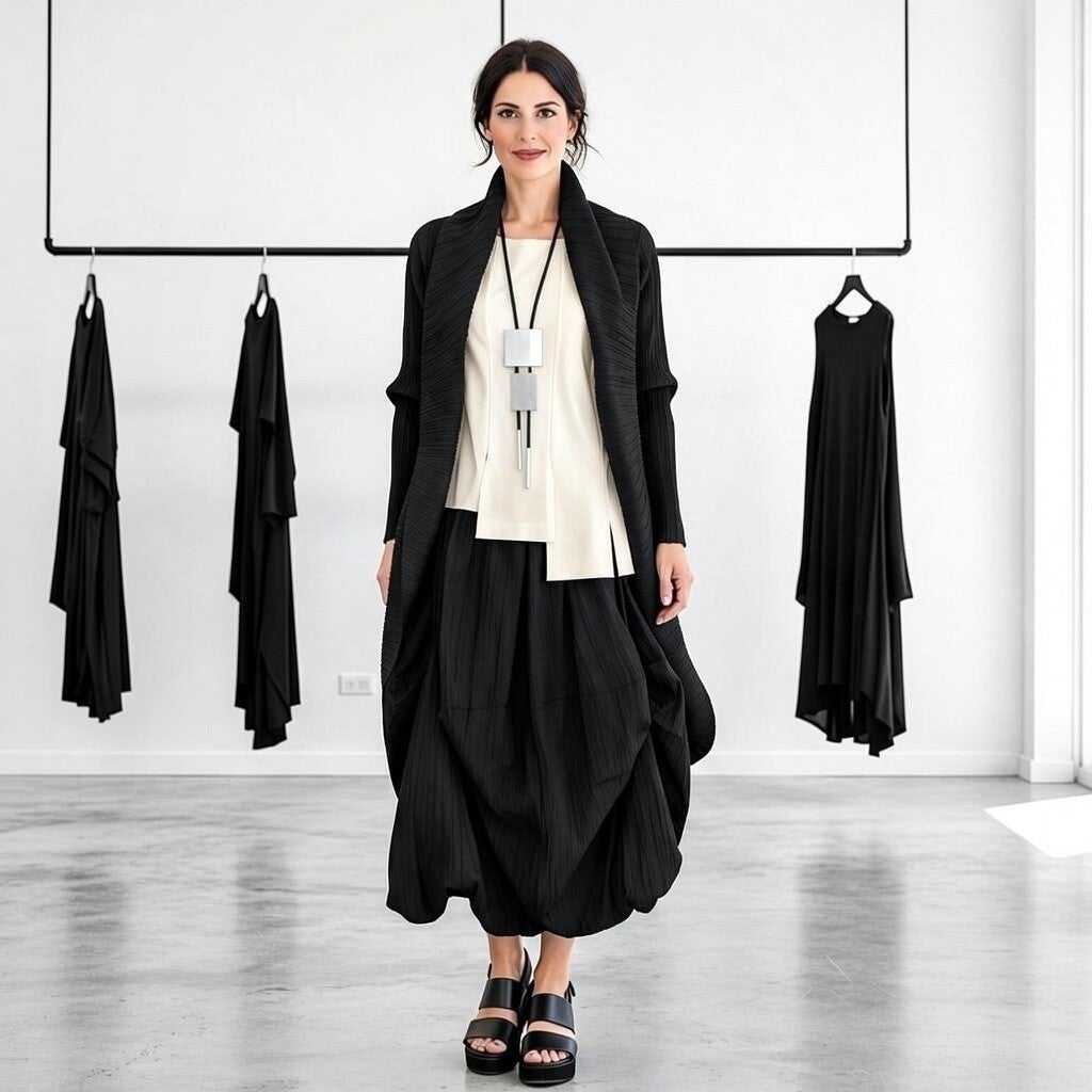 Crinkle Rock mit Gummibund und Raffsaum in schwarz