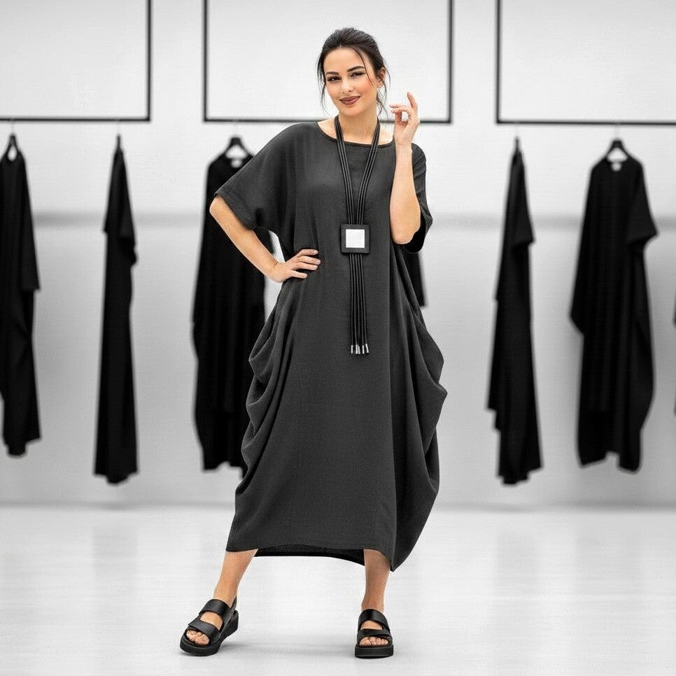 Leinen Kleid in gemütlicher Tulpenform in anthrazit